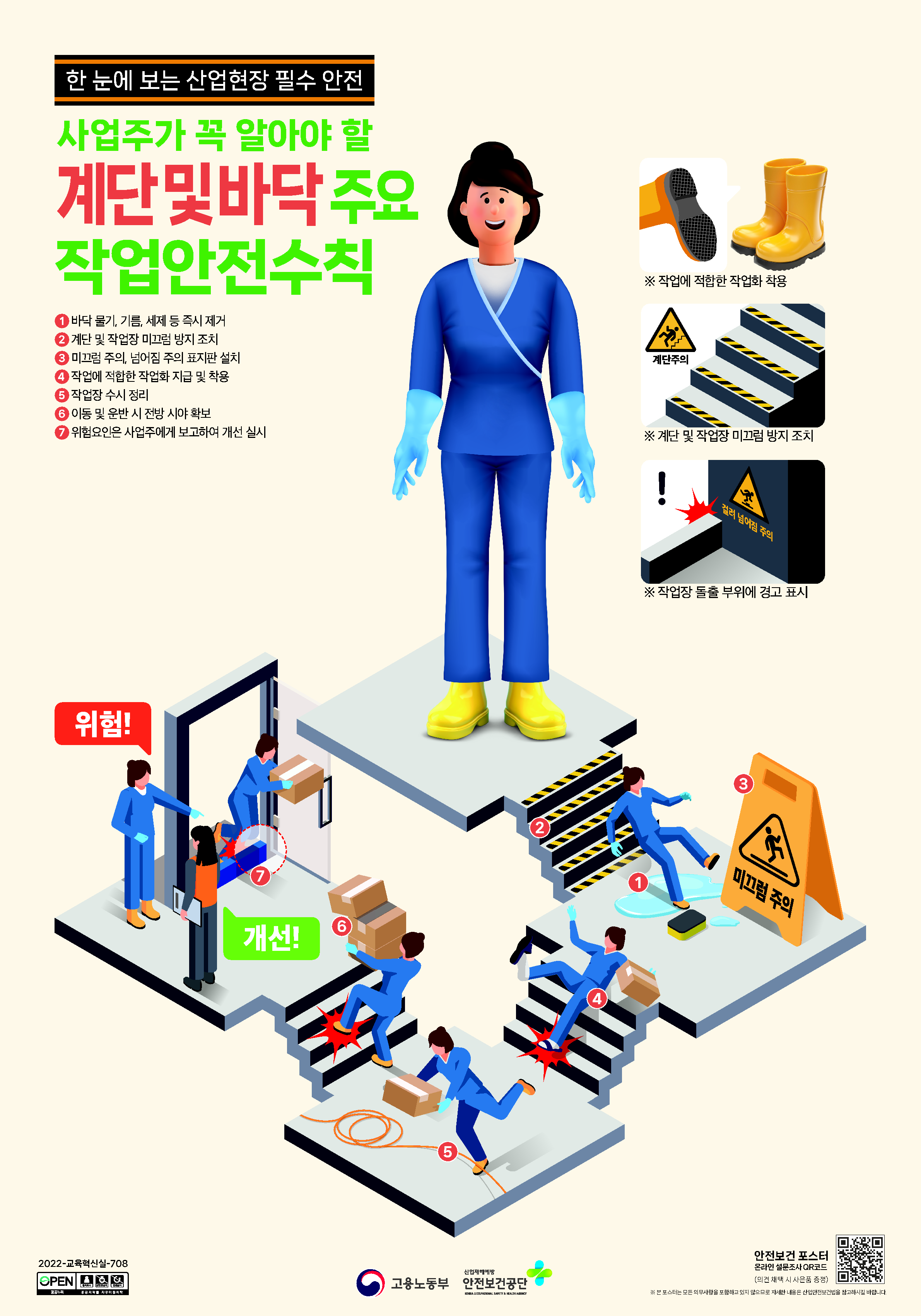 [한 눈에 보는] 계단 및 바닥 주요 작업안전수칙 포스터