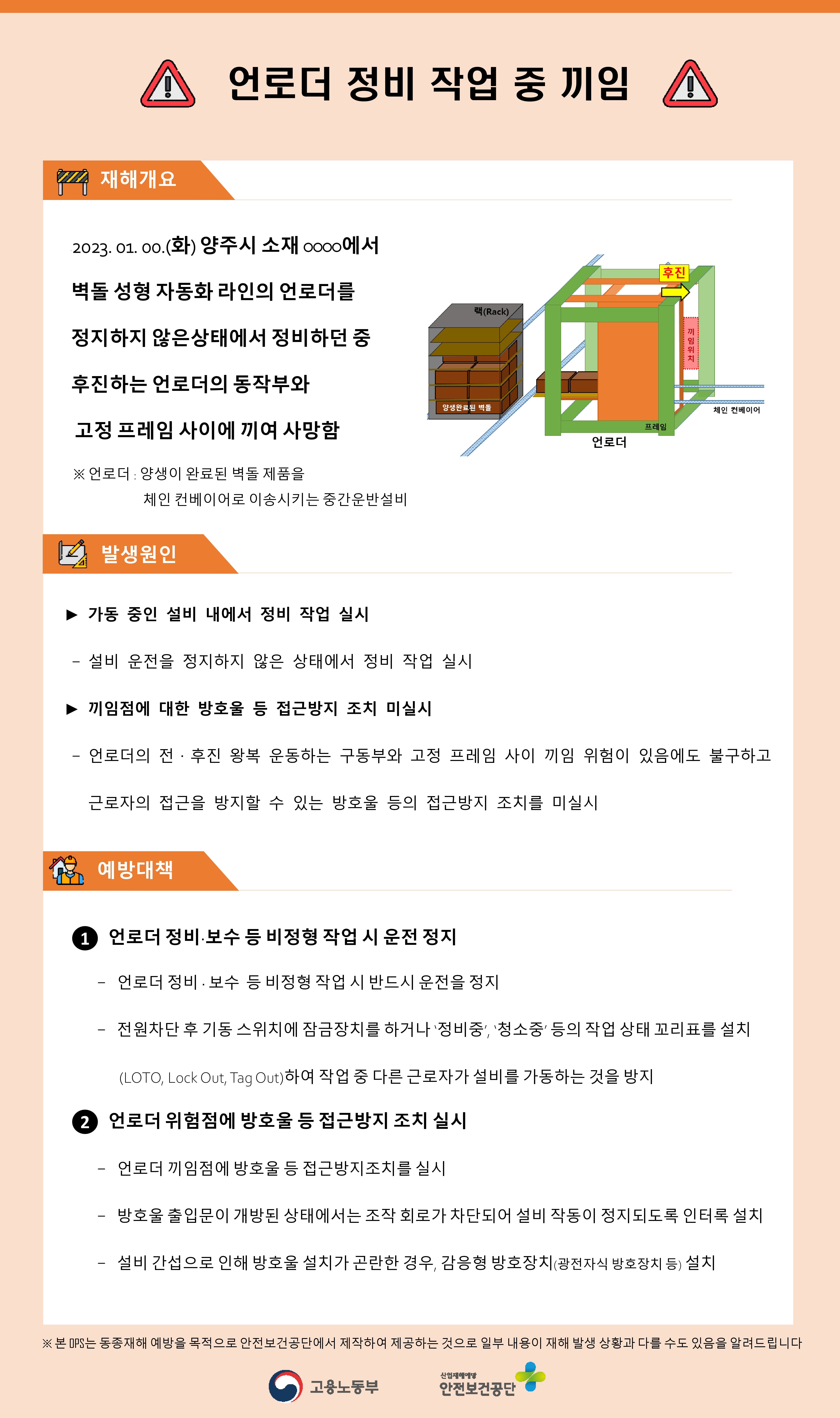 제조업 재해사례 - 언로더 정비 작업 중 끼임