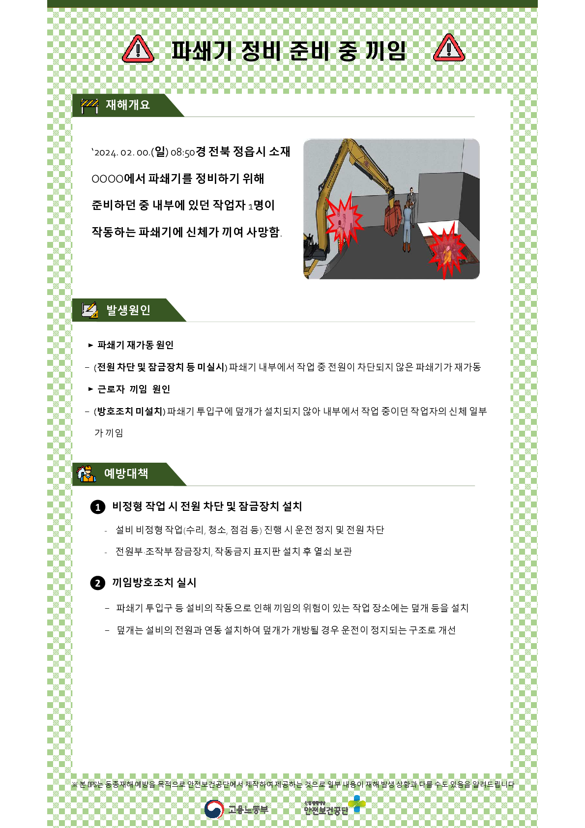 1.    제조업 재해사례 - 파쇄기 정비준비작업 중 끼임.pdf  [파일크기: 230.44KB]