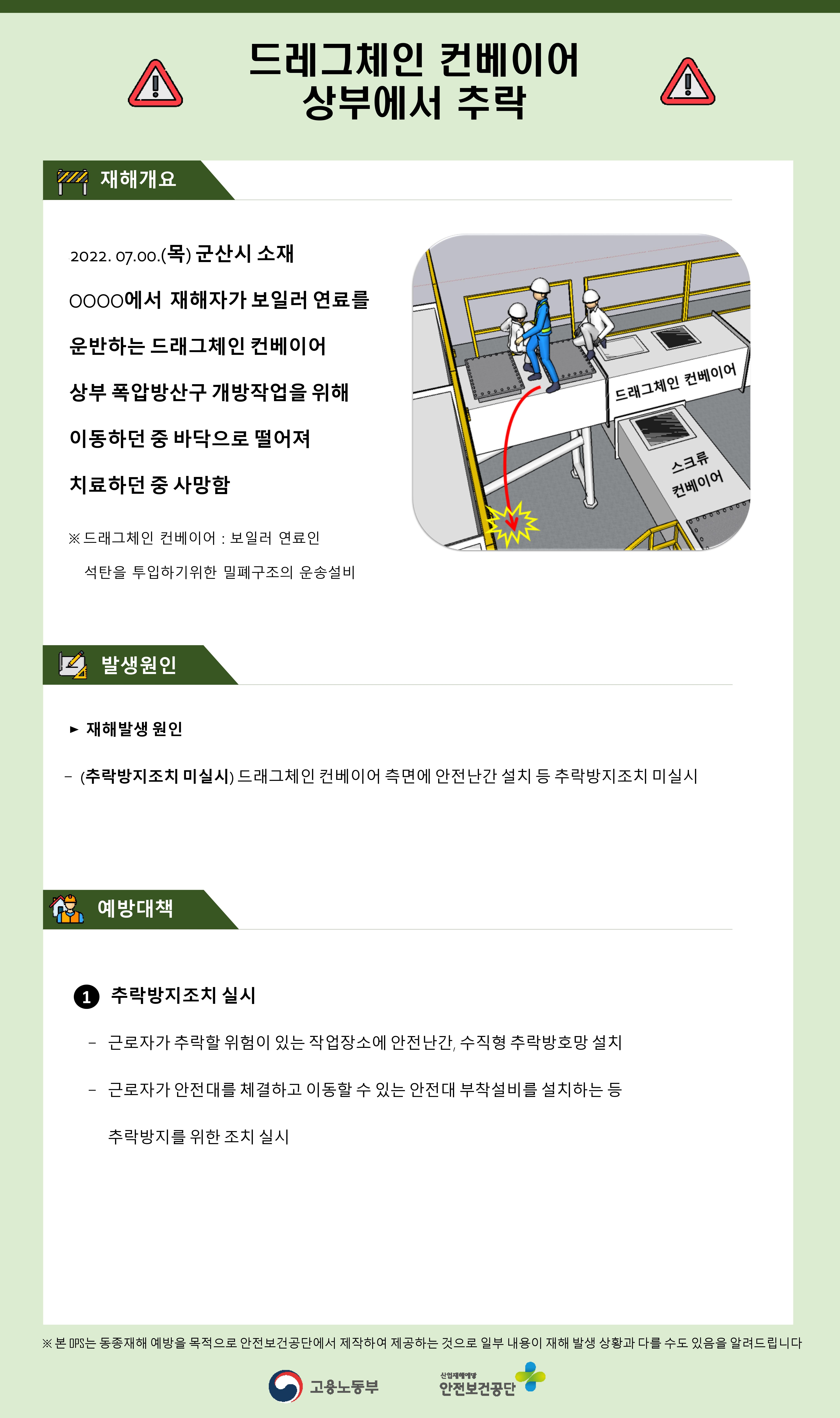 제조업 재해사례 - 드레그체인 컨베이어 상부에서 추락