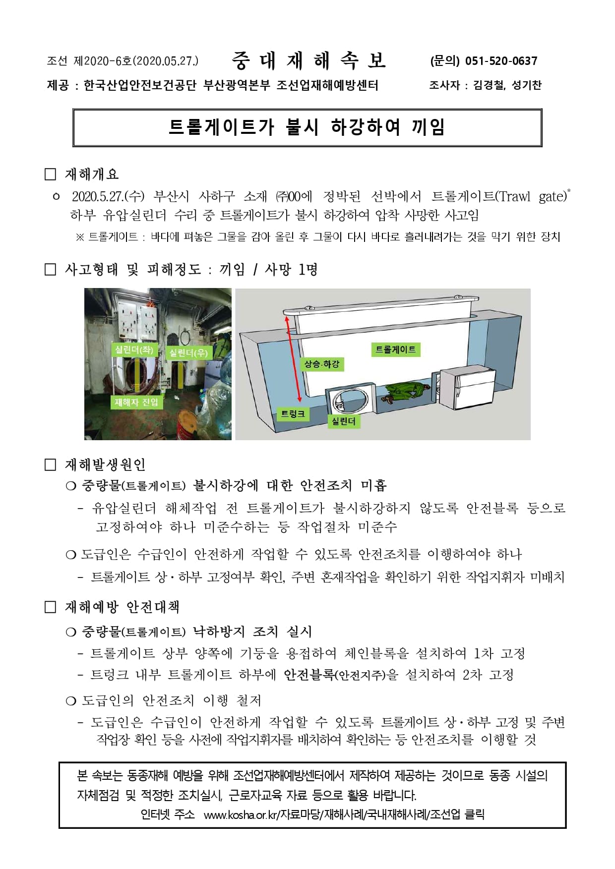 조선업 재해사례 - 트롤게이트가 불시 하강하여 끼임