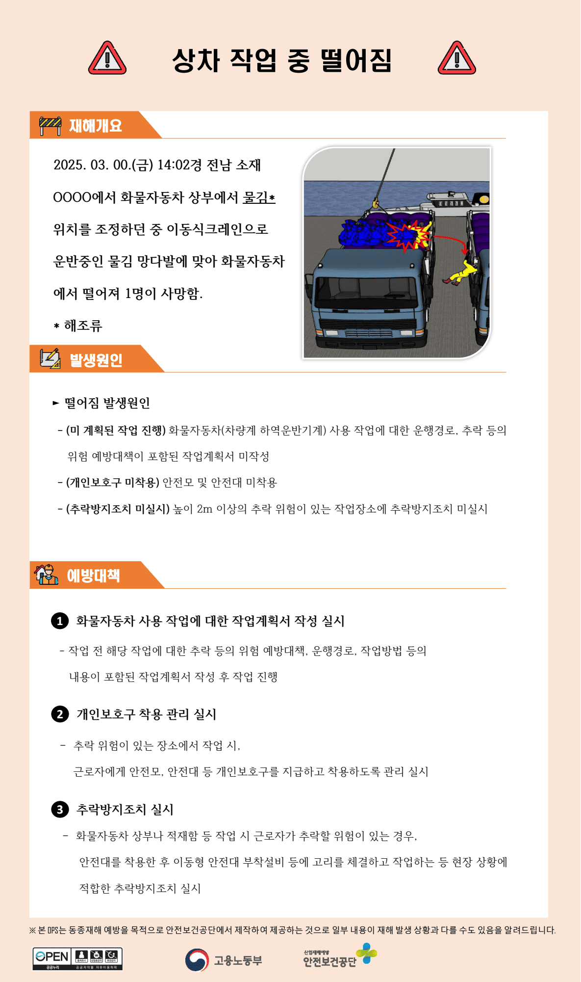 제조업 재해사례 - 상차 작업 중 떨어짐