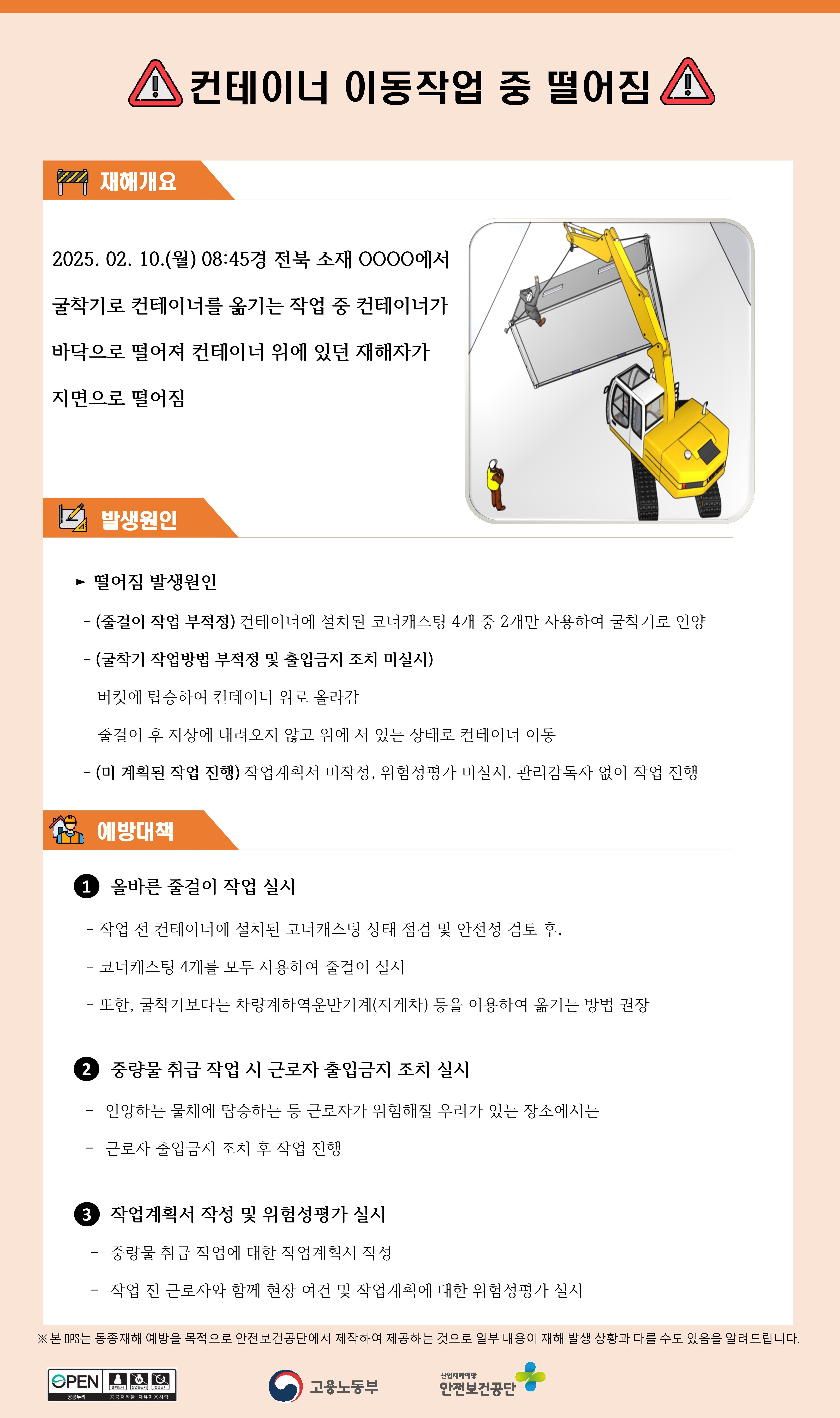 건설업 재해사례 - 컨테이너 이동 작업 중 떨어짐