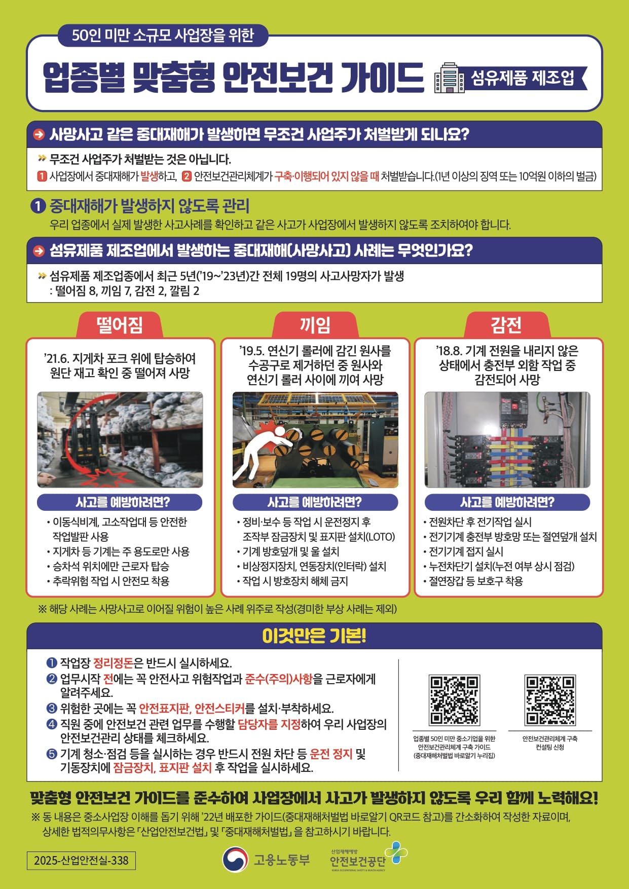 25년 업종별 맞춤형 안전보건가이드 (25년 업종별 맞춤형 안전보건가이드 (섬유제품제조업)