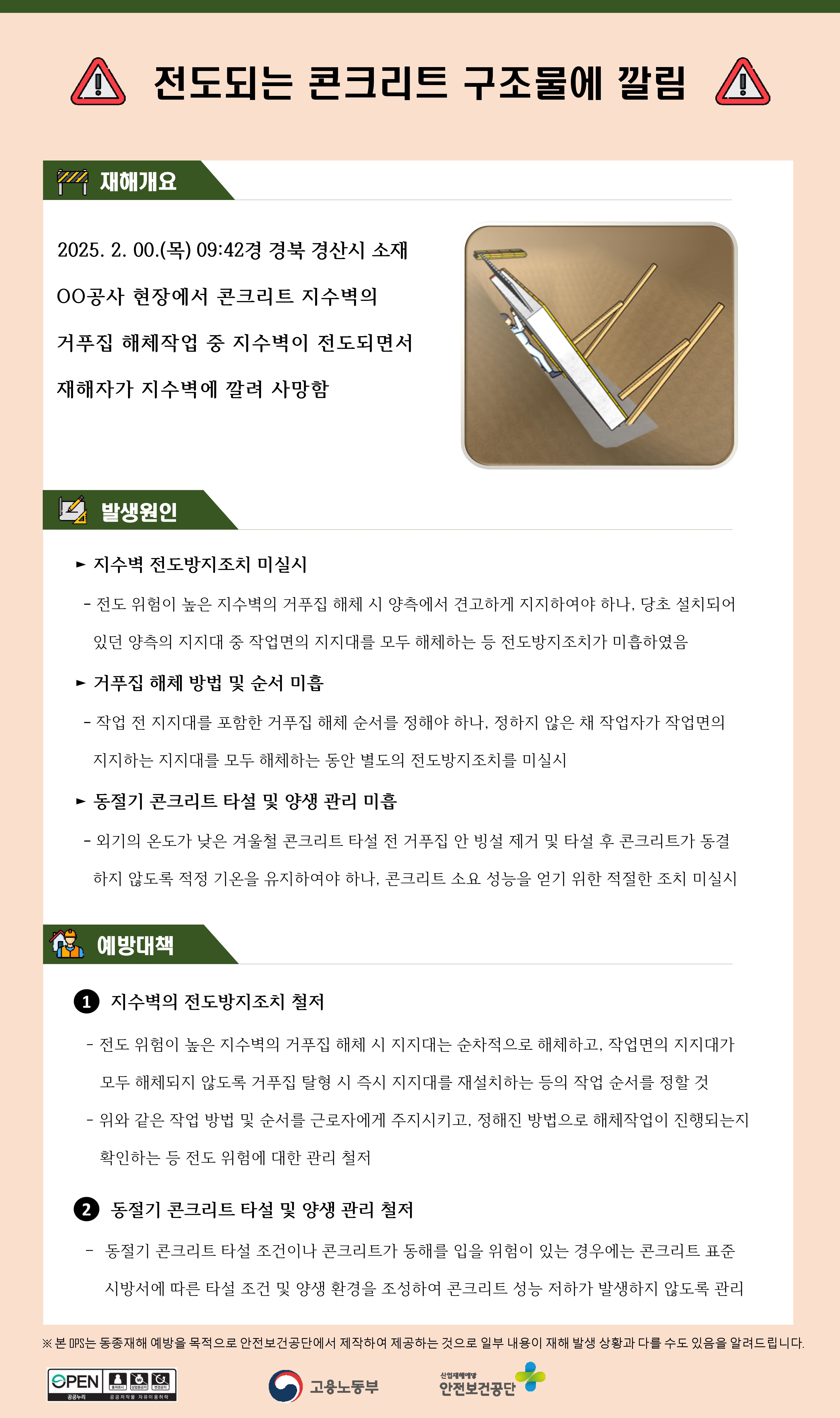 건설업 재해사례 - 전도되는 콘크리트 구조물에 깔림