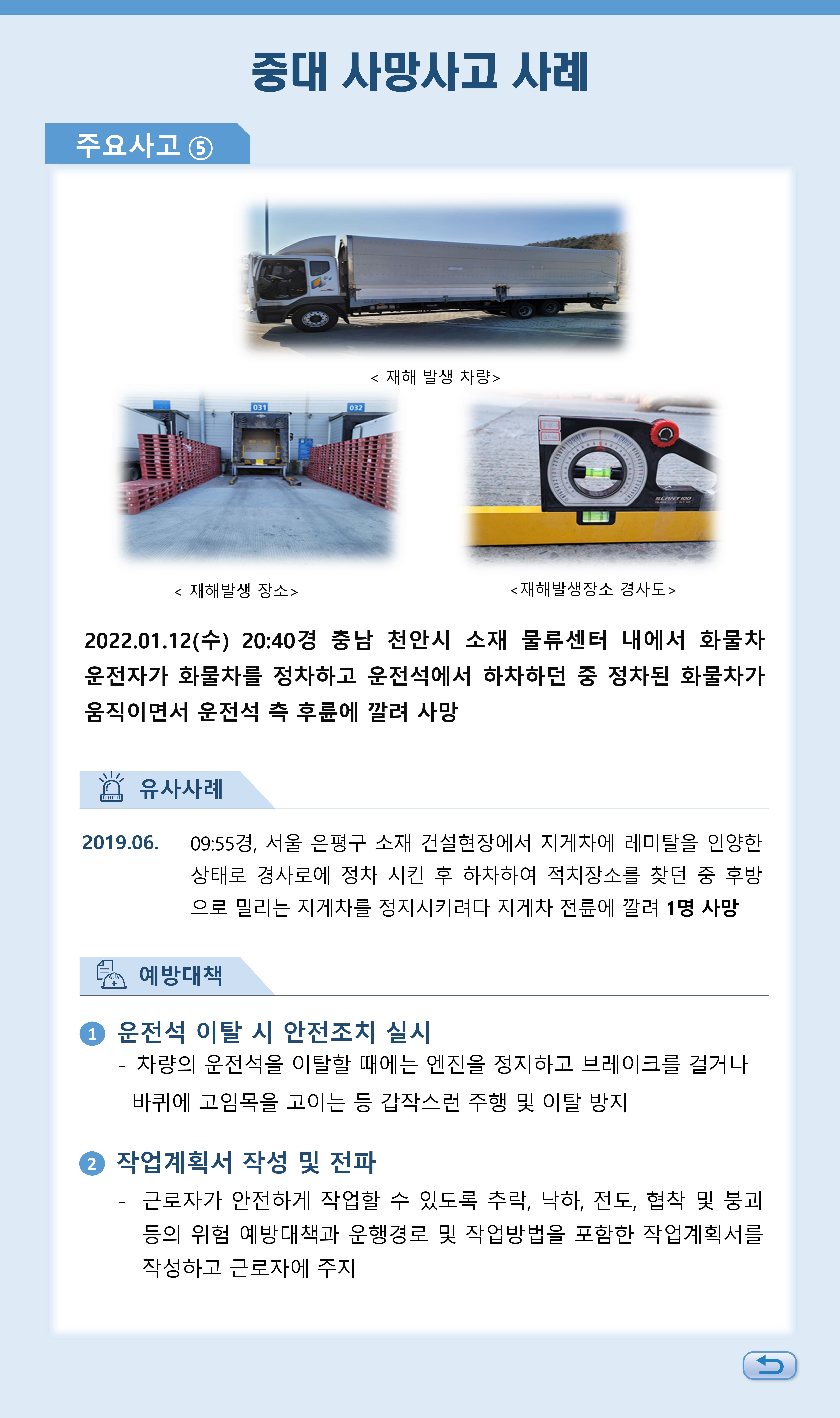 서비스업 재해사례 - 화물차 운전석 측 후륜에 깔림