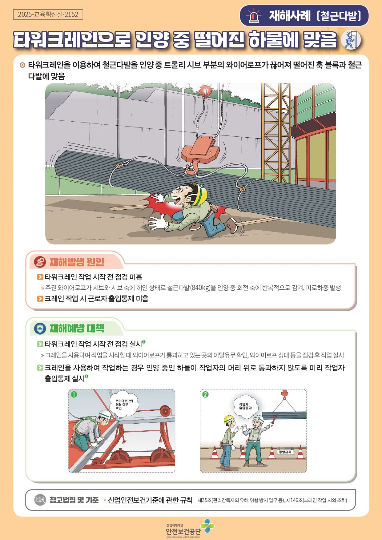 [중대재해] 타워크레인으로 인양 중 떨어진 하물에 맞음