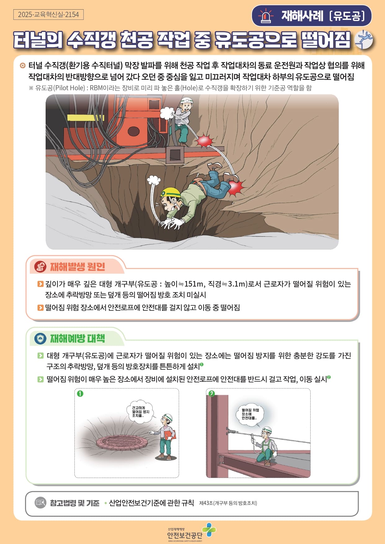 [중대재해] 터널 수직갱 천공 작업중 유도공으로 떨어짐