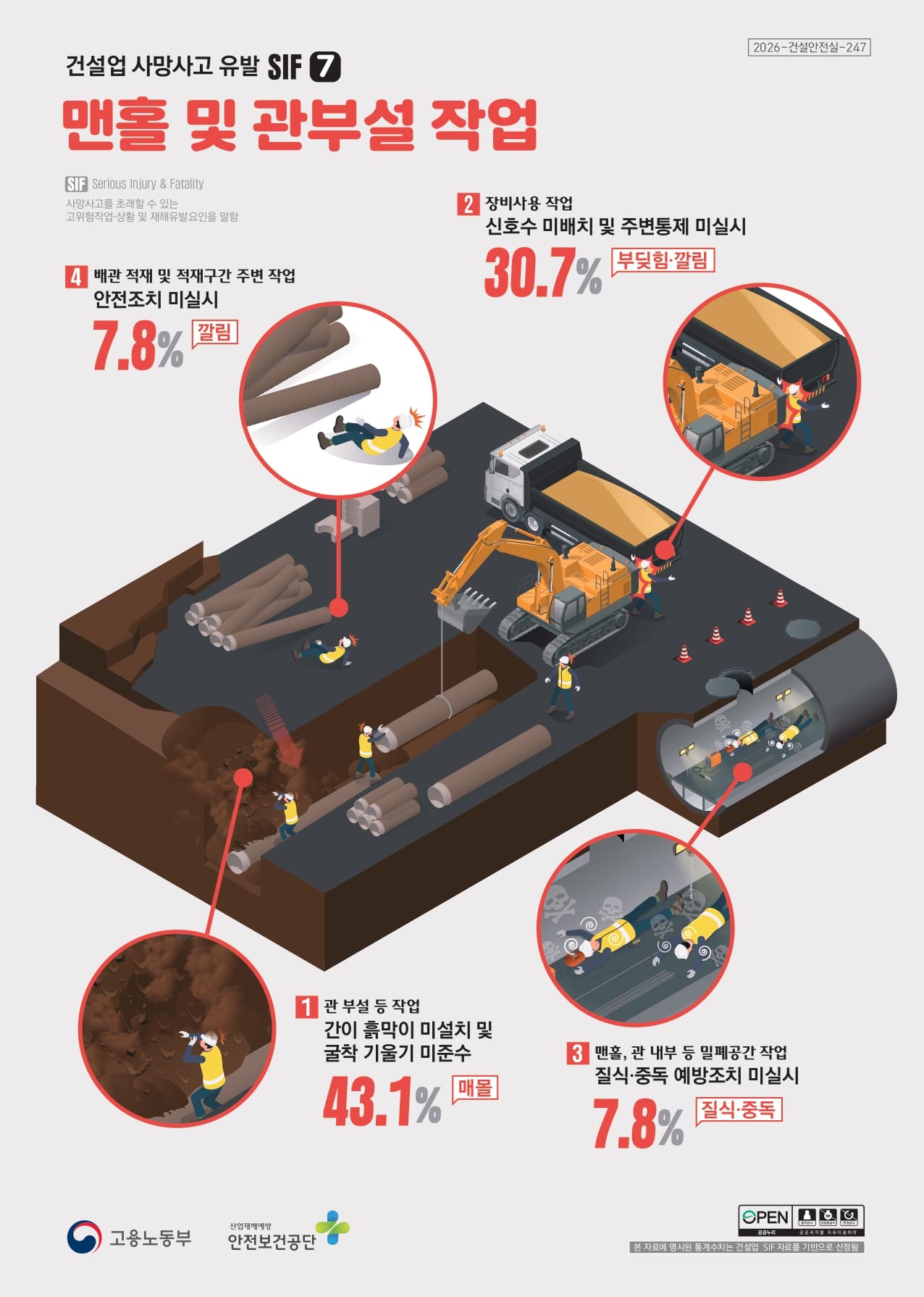 건설업 사망사고 유발 SIF(맨홀 및 관부설작업)